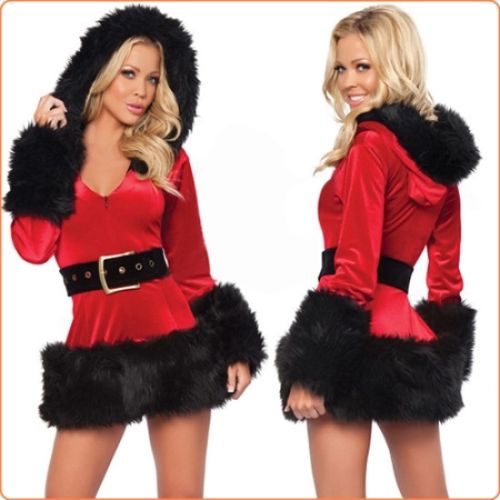WARM CHRISTMAS HOODED SEXY UNIFORM BLACK