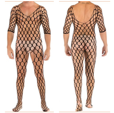 BIG MESH HOLLOWED-OUT SEE-THROUGH MEN BODYSUIT