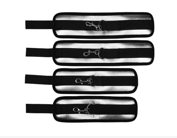 Simply place the bed straps your mattress and adjust the length and widths to size, creating a platform for wrist and ankle restraint without the need for a bed frame or any specialist equipment. Adjustable to fit single, double, king size and super -kingsized beds and easy to fold down to a portable size for storage and easy travel, this set is ideal for couples to whom discretion is key. The strap system measures 6 feet in length with two width for the cuffs to attach each measuring 12 feet across. 4 straps protrude from beneath your mattress, exposing 4 o-rings to which the cuffs connect, forming your bondage restraint.