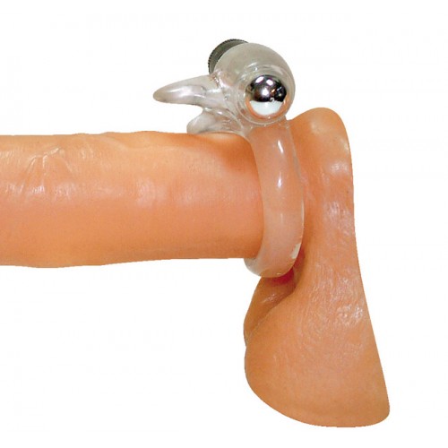 One size, transparent penis vibrating ring with detouchable mini vibrating bullet.