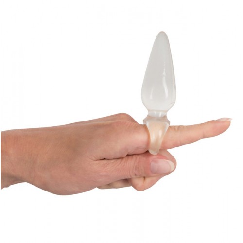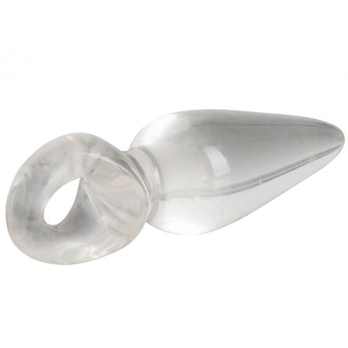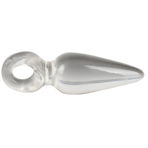 Super small – Super jelly soft mini butt plug in clear color. Butt plug with a smooth surface and finger loop. Transparent.