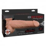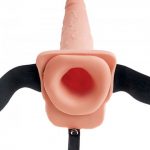 Ζώνη με dildo 23cm και κεφαλή που χύνει για να υγραίνετε την περιοχή όταν θέλετε. Προσθέτει μήκος και περίμετρο στον άνδρα καθώς και στην κεφαλή υπάρχει μια εισδοχή υγρού. Απλά πιέστε την κεφαλή και βάλτε την στο προτιμώμενο υγρό. Στη συνέχεια, αποδεσμεύστε την πίεση στον άξονα για να αναρροφήσετε το υγρό. Τώρα είστε έτοιμος! Πιέστε τον άξονα καθώς εισέρχεστε για να υγράνετε την περιοχή και να έχετε επιπλέον άγρια απόλαυση. Ο άνετος ελαστικός ιμάντας προσαρμόζεται εύκολα για να ταιριάζει σε περισσότερα μεγέθη, ενώ ο dildo χτυπάει το σωστό σημείο κάθε φορά. Διαστάσεις Συνολικό μήκος : 25.4cm Εισερχόμενο μήκος : 22.9cm Πλάτος : 5.3cm Η μέση ταιριάζει από 71.1cm μέχρι 132.1cm Εσωτερικό μήκος : 10.2cm Εσωτερική Διάμετρος : 4.1cm Υλικό: PVS