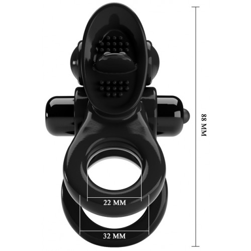 Elastic, penis and testicle ring, which is worn comfortably and quickly. It has a vibration in the penis, which is transmitted to the anus, vagina or clitoris during sexual intercourse. The specially designed “tongue” offers even greater pleasure to the clitoris. It has two rings for better and tighter grip on the penis as well as the testicles.