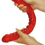 Red Bendable, Flexible double dildo made of easy-glide jelly material. Ideal to use by both genders, men and women.