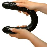 Black, Bendable, Flexible double dildo made of easy-glide jelly material. Ideal to use by both genders, men and women.