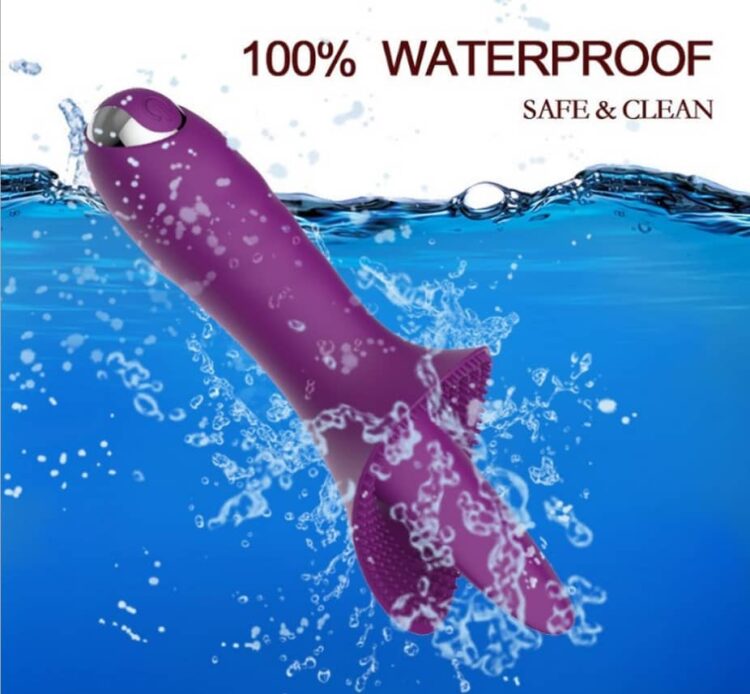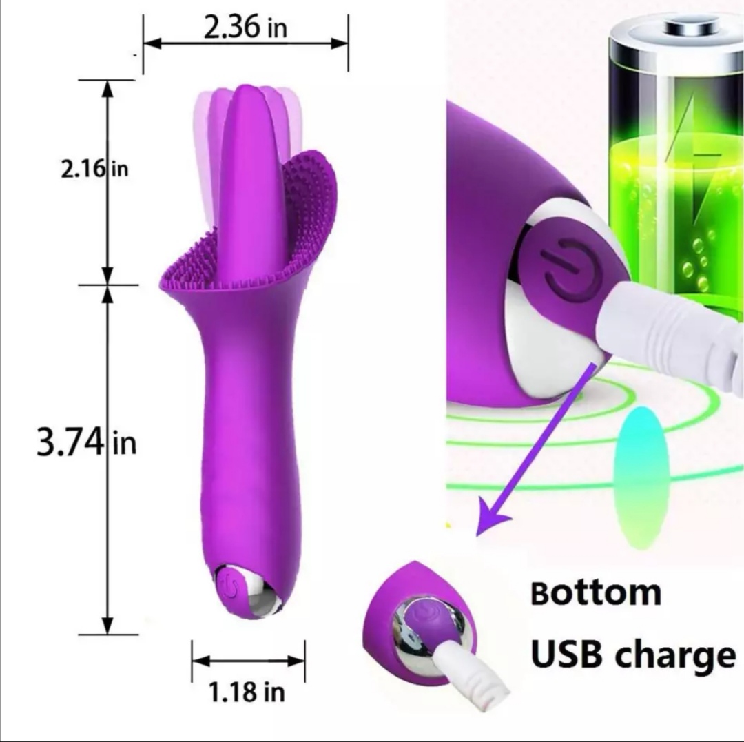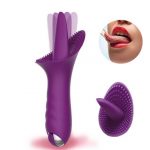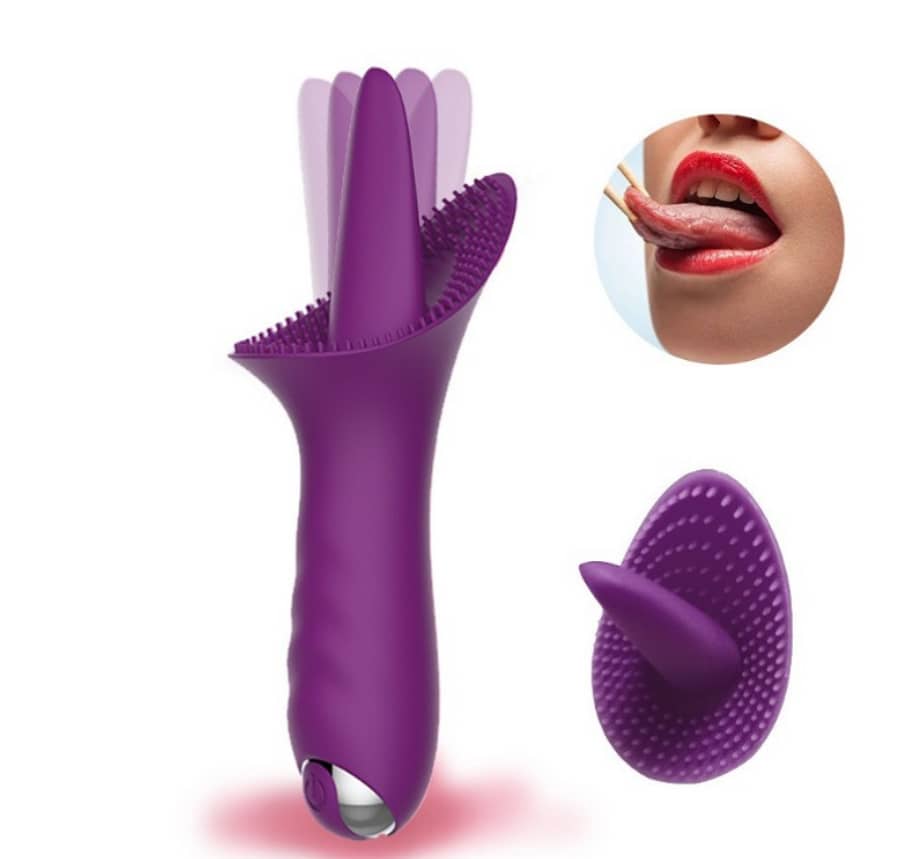 Rechargeable, waterproof tongue with vibration in purple color with ergonomic design.