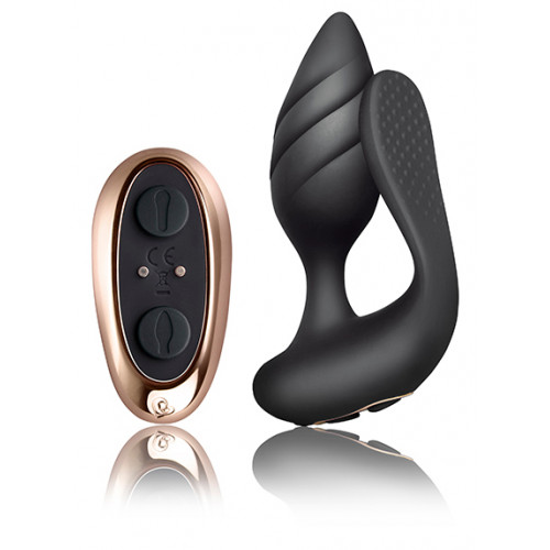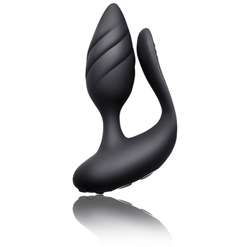 Απολαύστε πλήρης ηδονή σαν ζευγάρι με αυτή την πρωκτική σφήνα ιδανική για ζευγάρια! Το κωνικό κομμάτι του δονητή εισάγεται στον πρωκτό ενώ το καμπυλωτό τμήμα του δονητή εισάγεται στον κόλπο της γυναίκας. Κατά την σεξουαλική διείσδυση οι δονήσεις γίνονται αισθητές και από τους δύο, ενώ η γυναίκα απολαμβάνει τριπλή ευχάριστηση! Διαθέτει δύο ισχυρά μοτέρ, ενώ μπορείτε να επιλέξετε από τις 10 προσφερόμενες λειτουργίες και μοτίβα δόνησης. Όλες οι ρυθμίσεις δονήσεων ελέγχονται εύκολα μέσω του συμπεριλαμβανόμενου ασύρματου τηλεχειριστηρίου, έτσι ώστε να μπορείτε να απολαύσετε παιχνίδι από απόσταση. Τόσο ο δονητής όσο και το τηλεχειριστήριο, αποτελεί επαναφορτιζόμενο με το εμπεριεχόμενο καλώδιο φόρτισης USB,. Εφόσον είναι πλήρως αδιάβροχο, είναι ασφαλές να πάρετε την απόλαυση από το υπνοδωμάτιο στηνντουζιέρα ή και μπανιέρα!