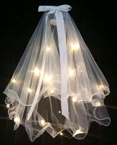 Τρελό νυφικό πέπλο για πάτσελορ πάρτι με LED λάμπες και πέρλα λεπτομέρεια