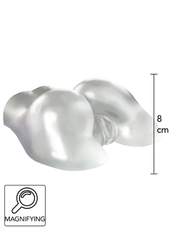 Experience an unparalleled experience with the Hidden Desire Bangers transparent vagina masturbator. Made from Transparent Love-Skin material, this masturbator offers a visually stimulating experience, allowing you to see every exciting detail. The clear, magnifying material enhances perception, adding an exciting dimension to your pleasure. Its soft, body-safe material and elastic vaginal tunnel offer a realistic feel for solo or partnered play. It is the perfect companion for endless pleasure. Simply add water-based lubricant and immerse yourself in the experience.