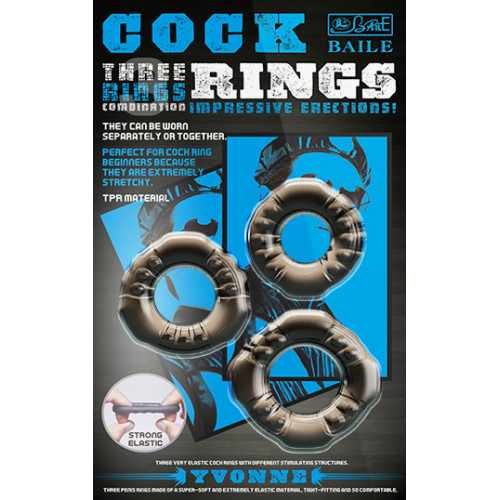 Σετ τριών 3 σούπερ ελαστικών δακτυλίων σε μαύρο χρώμα. Κατασκευασμένα για μεγάλες αποδόσεις και εξαιρετική αντοχή. Άοσμα, δεν κολλάνε, κατάλληλα με λιπαντικά που έχουν σαν βάση το νερό.