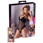 Black powernet body with cups and sting that can be ubuttoned. The body has rhinestone decoration in the cleavage area.