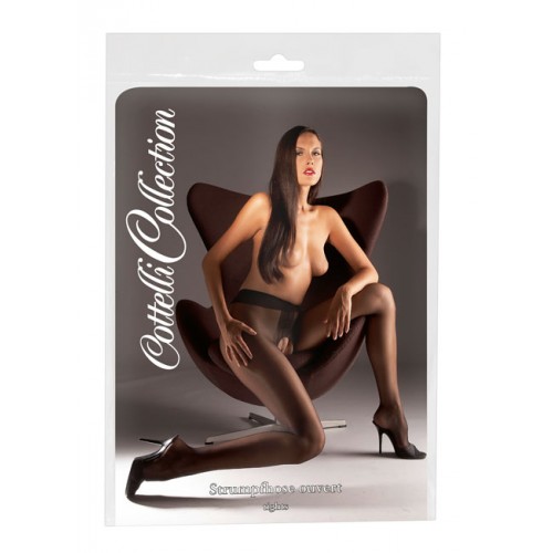 Cottelli Crotchless Black Tights with Satin Shine