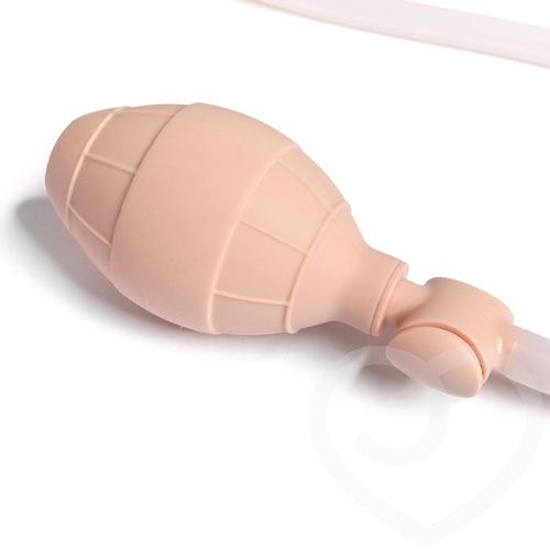 Inflate the larger of the two shafts by squeezing the easy-to-use hand pump. Increasing to over 3 inches in diameter, the inflatable dildo offers erotically filling sensations. Keep the strap on securely in place with the adjustable waist and leg straps. Coat both dildos in lashings of your favourite water-based lubricant for a slick, sensual ride.
