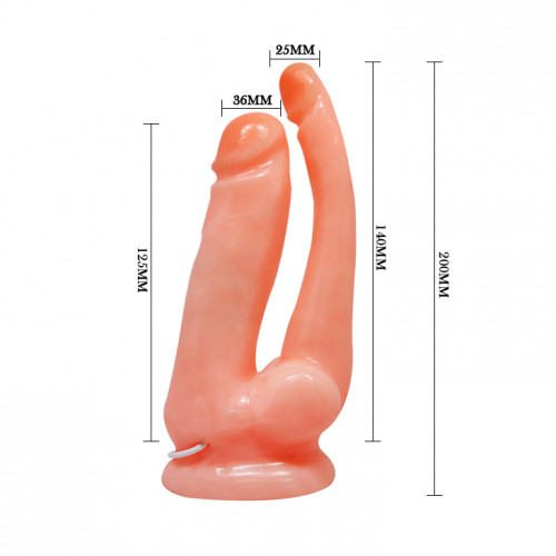 It has a smooth surface in both dummies, which when penetrated simultaneously into the points in question, additionally offer even greater stimulation. It has a suction cup for comfortable hands-free use for easy application on all smooth and clean surfaces such as walls, floor, furniture, shower, etc. Made of third generation Flexible soft PVC material. The Dildo, with two penis dummies, can even be worn on a universal strap strap which must have dummy retaining rings on the belt, from the point of the suction cup. Made with odorless, flexible, soft and very friendly to humans, third generation TPE, free of phthalates, strange odors and chemicals. Holds all RoHs, CE health certifications.
