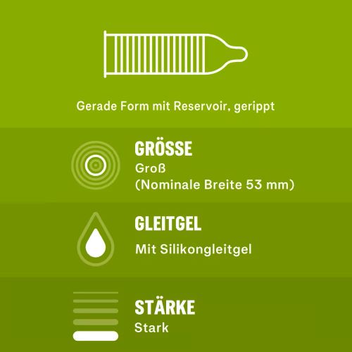 They are dermatologically tested and 100% electronic – for reliable protection. In addition, they convince with their pleasant smell. Material: Natural rubber latex