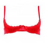 Slightly padded, underwired 1/4 cup bra with matching crotchless G-string.