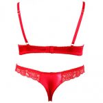 Smooth, shining red satin lingerie set with beautiful lace details.