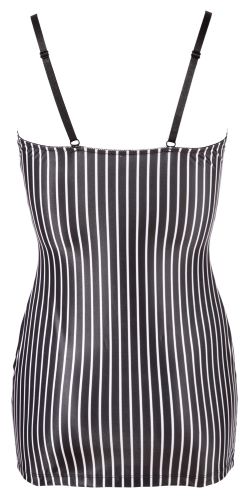 Tight fitting mini dress with adjustable straps and two suspender straps in the front. Patched studs in the front and fake collar at the deep cleavage. Tie included.