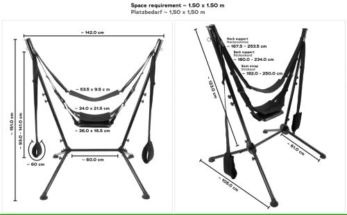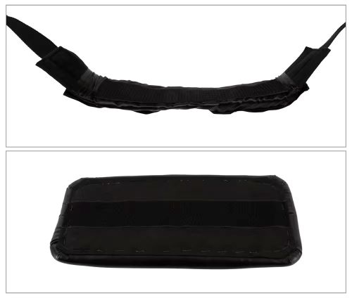 • Το μαλακό μαξιλάρι καθίσματος και τα δύο μαλακά ανακλινόμενα μαξιλάρια για την πλάτη και το κεφάλι/λαιμό, καθώς και οι δύο άνετες βελούδινες θηλιές στήριξης για χέρια, πόδια κρέμονται από αδιάβροχα λουριά. Όλοι οι ιμάντες ρυθμίζονται ξεχωριστά για να ταιριάζουν σε μήκος. Το κάθισμα μπορεί επίσης να αφαιρεθεί (κουμπωτό με γάντζο και βρόχο).
