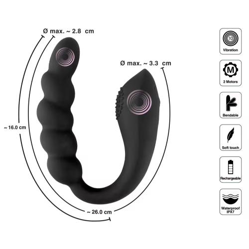 Αυτός ο Διπλός Εύκαμπτος Διεγέρτης από την Black Velvets συνδυάζει έναν δονητή με χάντρες και έναν δονητή με δυνατότητα τοποθέτησης σε ένα καινοτόμο σχέδιο. Χάρη στην υψηλή ευελιξία του, ο διπλός δονητής επιτρέπει ταυτόχρονη εσωτερική και εξωτερική διέγερση και μπορεί να χρησιμοποιηθεί τόσο κολπικά όσο και πρωκτικά. Με έντονες δονήσεις σε κάθε άκρο και τεράστια προσαρμοστικότητα, μπορεί να χρησιμοποιηθεί για ευέλικτη διέγερση, παιχνίδια και στάσεις – μόνος ή με σύντροφο, στο κρεβάτι!