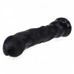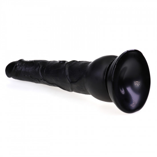 High-quality, flexible, penis-shaped dildo with a slightly curved, motorless, veined surface, made of a material with a skin-like feel similar to body tissue. Its suction cup can be attached to a flat surface.