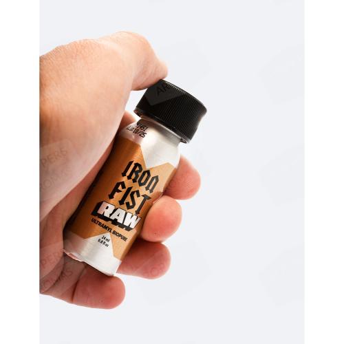 Iron Fist Raw Poppers 24ml. Your favourite Iron Fist range has a Raw version! This Iron Poppers is a plant-based version, as it contains a vegetal amyl biopure formula. Even though it is a plant-based amyl nitrite, this 24ml aluminium poppers Iron Fist will please you with the same strong effects you appreciate so much.