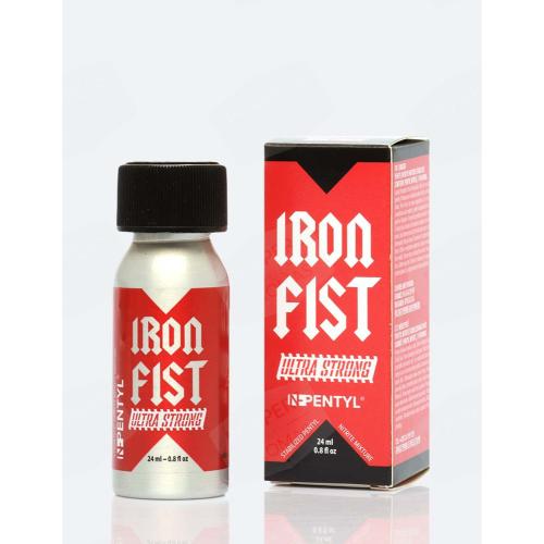 Iron Fist Ultra Strong poppers 24ml. Looking to spice up your nights even more? We have exactly what you need! Iron Fist Ultra Strong will make you live an unforgettable night thanks to its strong pentyl nitrite formula. Stronger, faster, the Iron Fist poppers Ultra Strong is the perfect companion for your erotic evenings, alone or with others. The unbreakable aluminum bottle retains its powerful aroma for maximum sensation. Enjoy its discreet cardboard box and its design red color.