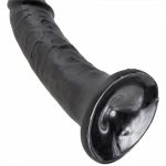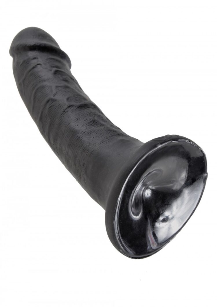 Hand-detailed to showcase a smoothly tapered tip and shaft criss-crossed with subtly swollen veins, this version of the King boasts a nice wide base that not only act as a worry-free barrier agasint the deepest penetration, but also provides lots of stability in a harness or when secured agasint a flat surface. An extremely sturdy suction cup beneath holds steady, positioning the King vertically on floor or counter top, or horizontally on wall or window.