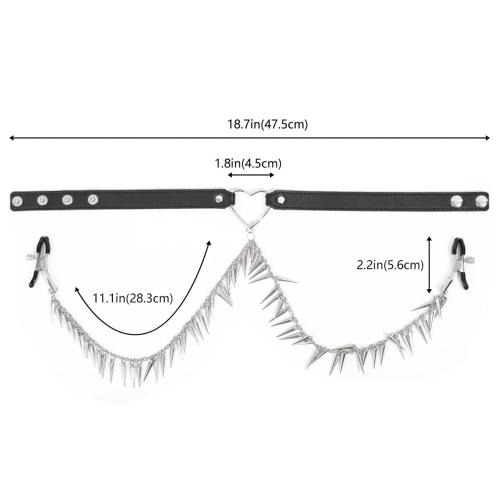 Υλικό: Δέρμα + Μέταλλο Χρώμα: Μαύρο + Ασημί Μέγεθος Κολάρου: 47,5 εκ./18,7 ίντσες Μέγεθος Αλυσίδας: 28,3 εκ./11,1 ίντσες Μέγεθος Καρφιών: 5,6 εκ./2,2 ίντσες