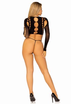 2 PC. Seamless cut out long sleeve crop top and g-string panty.