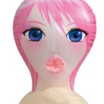 Inflatable life-sized love doll in an arched back position. With incredibly big breasts (cup D) and two love holes (mouth and vagina). An included pussy masturbator can be inserted into the pussy. Her violet/pink manga-style face is imprinted. Material doll: PVC. Masturbator made of skin-like TPR.