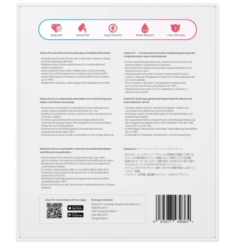 Αυνανισμός για Άνδρες Ο ισχυρός αυνανιστήρας ώθησης LOVENSE Solace Pro για έμπειρους χρήστες σεξουαλικών παιχνιδιών για άνδρες. Με μέγιστη ταχύτητα 300 κρούσεων ανά λεπτό, ο αυνανιστήρας Solace Pro προσφέρει μια έντονη εμπειρία και είναι ο ιδανικός σύντροφος για μακροχρόνια σεξουαλική απόλαυση, με 2 ώρες φόρτισης και έως και 14 ώρες παιχνιδιού.