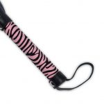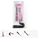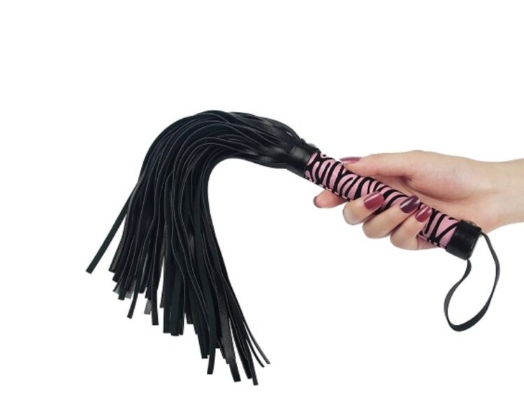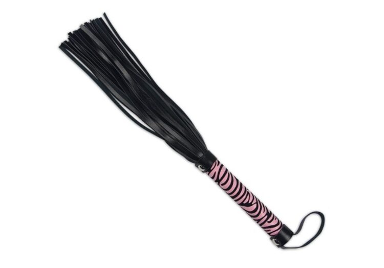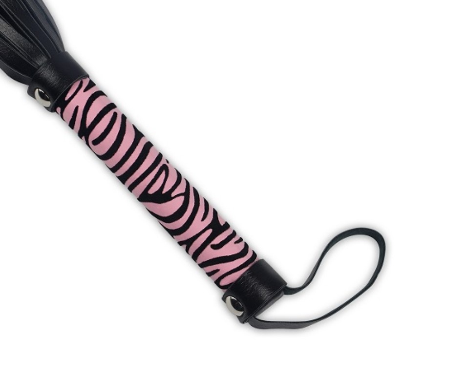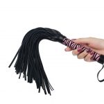 With a solid, cylindrical handle with small hanging loop, this flogger feels great in the hand. The long tails offer a gentle sting from lashes and a delightfully teasing tickle when draped across the skin.