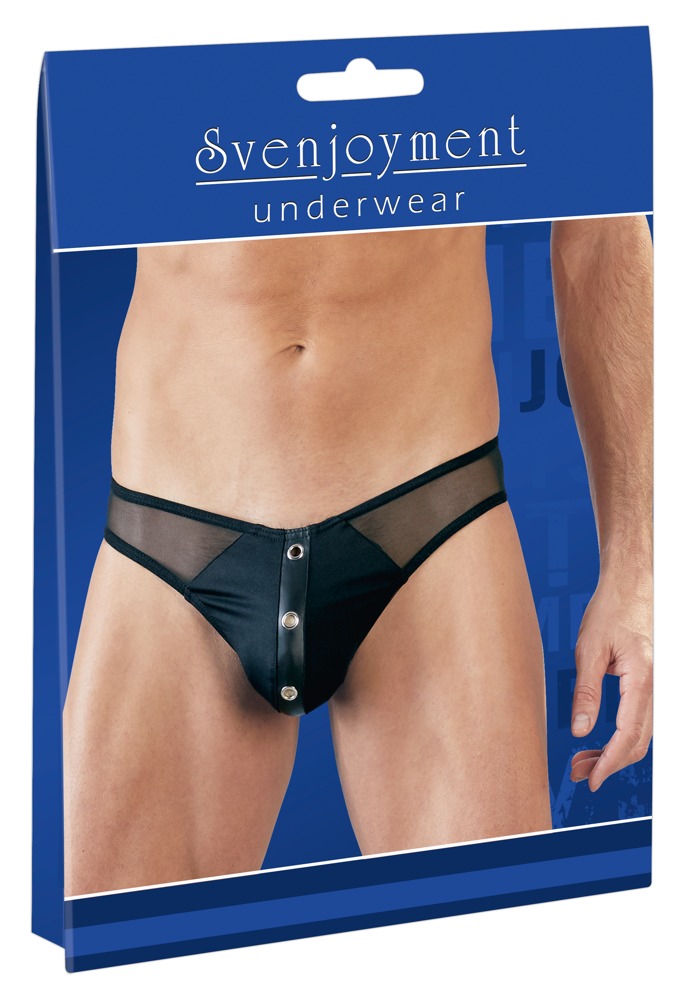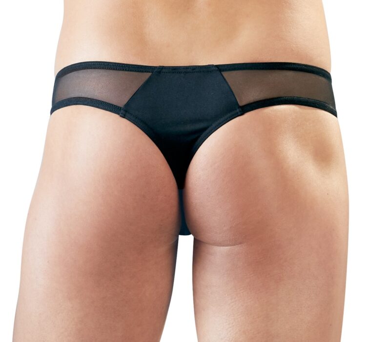 Men’s string made out of powernet with centrical microfibre inserts at the front and back. With decorative eyelets at the front.