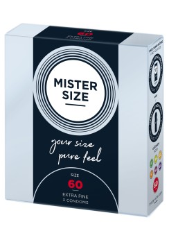 MISTER SIZE – καθαρή αίσθηση 60mm (3 τεμάχια), το προφυλακτικό για το ισχυρό πέος. Εξαιρετικά λεπτό (0,05 mm) – για καθαρή ένταση. Συνολικό μήκος 20 cm
