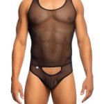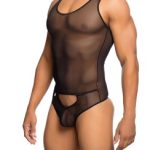MOB Sexy Mesh all-over body and back thong. Front opening for easy access. Tulle Netting: Nylon 95% Spandex 5%.