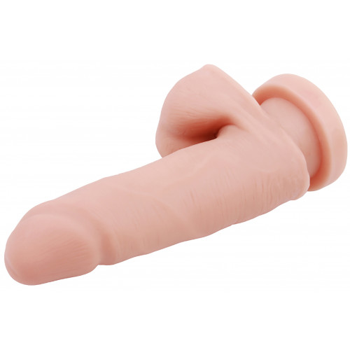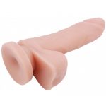 This Mr Dixx 5.7 inch Dual Density dildo has a firm core with a softer, lifelike outside. This is called Dual Density and it adds to the experience during use: penetration will feel like it’s the real thing! The veins, glans and scrotum also contribute to this experience. The dildo has a suction cup base, so that it will stick firmly to any smooth surface and so that is compatible with strap-on harnesses. Made of anti-bacterial TPE, free of phthalates and latex, non-smelling and body safe. Need the specific powder for maintenance.