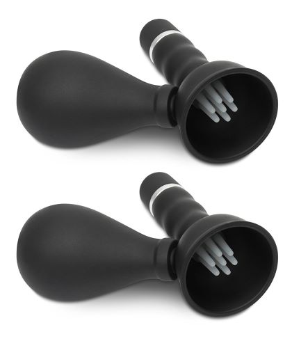 These petite suction based vibrators cup the nipples (or any other erogenous zone) to draw blood into the area which increases sensation, while soft bristles inside swish and flick to light up your senses. Just place the cup over the nipple, and gently squeeze the attached bulb for adjustable tension.