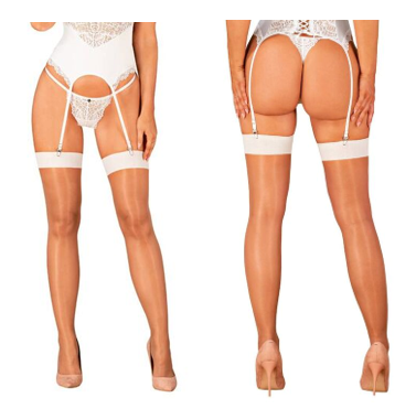 The feminine and elegant stockings from the S814 collection are a very sexy accessory that fantastically emphasises the appearance of the legs. The white, smooth finish beautifully decorates the thighs and adds elegance, and the beige mesh perfectly fits the body. Together with the matching garter belt, you will create an ensemble thats full of sex appeal both in the bedroom and for everyday wear.