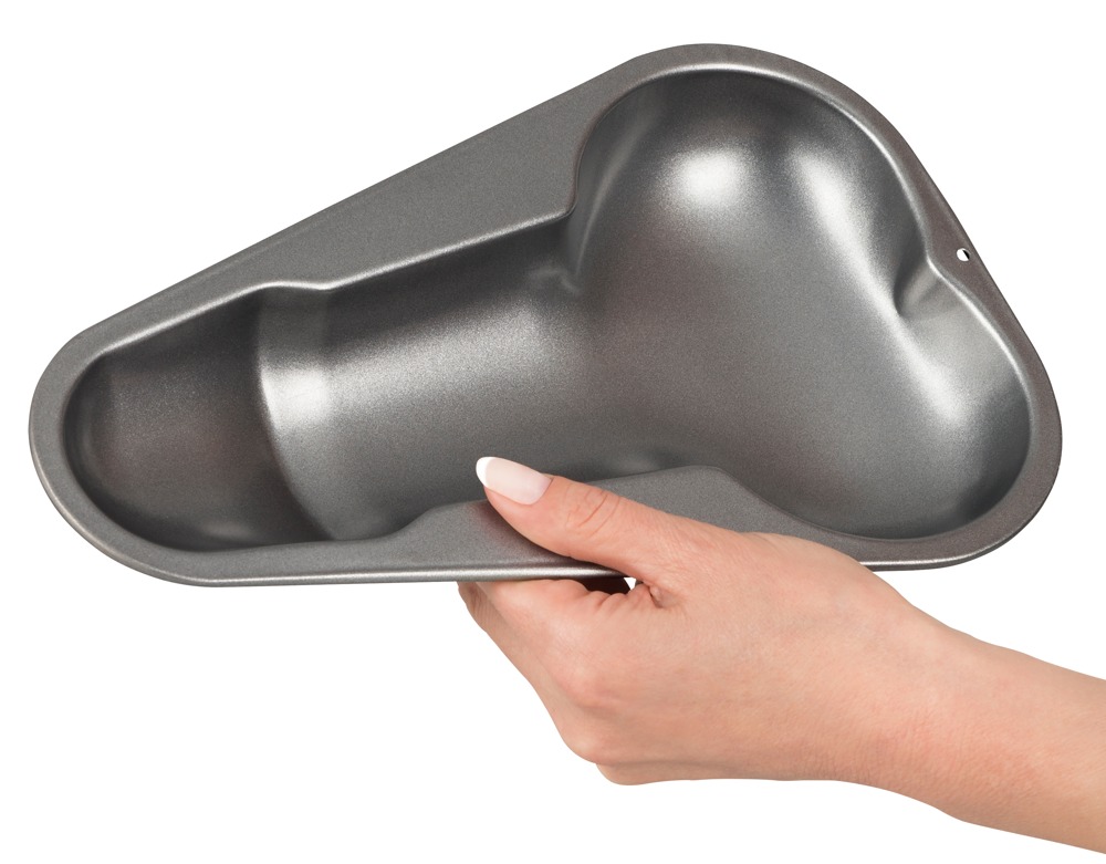 Penis-shaped baking tin made out of carbon steel for cake, ice cream or blancmange.