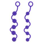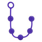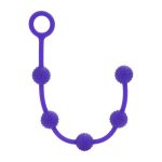 5 silicone anal balls in purple color, 2 different sizes and designs. The one with ribbons and the other spot. The box includes both drawings The cord end is C-shaped for easier use. Now make the imagination of anal pleasure a reality.