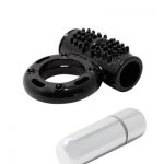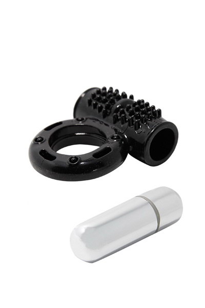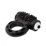 Δαχτυλίδι πέους με ισχυρή βολίδα δόνησης με 10 στάσεις, φτιαγμένο από υλικό ζελέ σε μαύρο χρώμα.