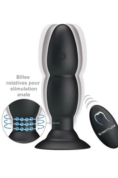 Plug remote controlled vibrating anal Pretty Beaded Love for Extra Pleasure. 4 vibration modes – 4 rotation modes – Silicone – Sucker. 1 LR03 battery not supplied to the remote control.