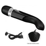 Universal vibratory massager type Wand. The toy is equally well suited for intimate caresses and for general body massage. The model is equipped with a rounded head, inside which a high-quality vibrating element is installed. She perfectly caresses the clitoris, labia and any other external erogenous zones. High-quality hypoallergenic silicone coating glides well and moves easily over the body. You can purchase additional attachments and expand the capabilities of the device. The gadget has 7 vibration modes and 5 speeds. The total length is 29 cm, diameter is 5.8 cm. The built-in battery is used for power, charged via a USB cable.
