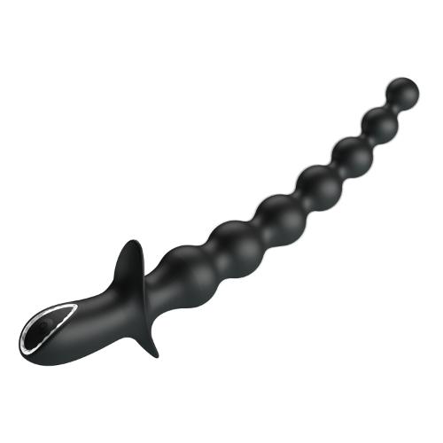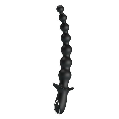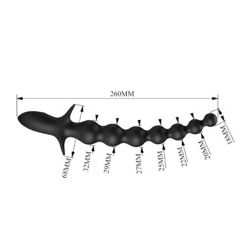 Πρωκτικό παιχνίδι με δόνηση και σφαίρα 10 λειτουργιών. Αυτή θα μπορούσε να είναι η τέλεια συλλογή από πρωκτικά παιχνίδια για αρχάριους που θέλουν να εκπαιδεύσουν τον πρωκτό τους ή απλώς για μερικούς καλεσμένους σε ένα πάρτι με επαγγελματικό πρωκτικό παιχνίδι. Το λείο μαύρο φινίρισμα σιλικόνης θα καταπραΰνει τις πρωκτικές σας επιθυμίες καθώς το απλώνετε σε λιπαντικό με βάση το νερό και το σύρετε αργά, σπιθαμή προς σπιθαμή για έντονη δονητική ικανοποίηση. Η λαβή είναι επίσης πρακτική, καθώς επιτρέπει την ομαλή κίνηση και την εύκολη αφαίρεση.