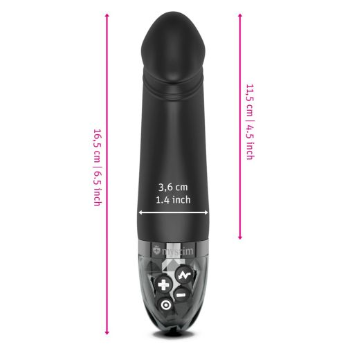 Handy vibrator Real Deal Neal E-Stim from Mystim with a pronounced glans for targeted hotspot stimulation and intense intimate massages – alone or with a partner. 8 vibration modes and 5 e-stim modes provide plenty of variety. And as a very special function, there is an additional programme for optimal training of the pelvic floor muscles. Everything can be conveniently controlled directly on the toy at the touch of a button – separately or combined.