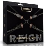 Παρουσιάζουμε το σύστημα συγκράτησης κάτω από το στρώμα Rebellion Reign από την εξαιρετική μας συλλογή. Κατασκευασμένο με γνώμονα την ανθεκτικότητα, αυτό το σετ διαθέτει χειροπέδες καρπού και αστραγάλου από πολυουρεθάνη, καθώς και τέσσερις ρυθμιζόμενους ιμάντες από νάιλον που μπορούν να τοποθετηθούν εύκολα κάτω από το κρεβάτι ή το στρώμα σας. Ιδανικό για κρεβάτια χωρίς κολόνες, είναι αρκετά ευέλικτο ώστε να μπορεί να χρησιμοποιηθεί σε καναπέδες ή σε οποιοδήποτε μεγάλο ορθογώνιο έπιπλο, επιτρέποντάς σας να εξερευνήσετε διαφορετικές στάσεις και να ικανοποιήσετε τις επιθυμίες σας.
