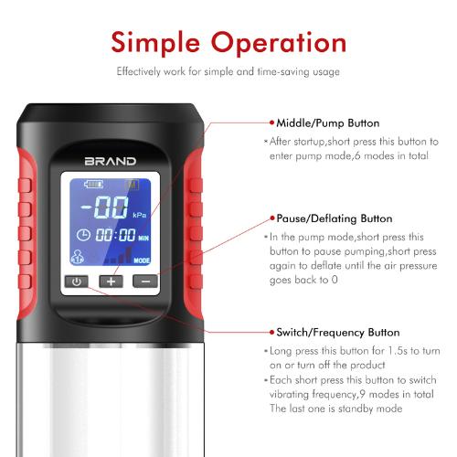 6 τρόποι αναρρόφησης: Αυτή η αρσενική συσκευή μεγέθυνσης διαθέτει 6 σχέδια αναρρόφησης. Οι πρώτοι 3 τρόποι είναι οι τρόποι αναρρόφησης σταθερής πίεσης, οι οποίοι χρησιμοποιούνται συνήθως για την εκπαίδευση της ανδρικής αντοχής. Και οι άλλες είναι λειτουργίες εισπνοής και ξεφουσκώματος, ώστε να μπορείτε να τις χρησιμοποιήσετε ως βεντούζα για άντρες αυνανισμού.