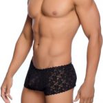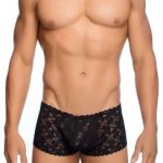 MOB Eroticwear Rose Lace Mini Boy Shorts are for those modern men that like the finer things in life and want to feel and look sexy. The subtly sheer rose embroidered lace leaves just enough to spark the imagination and will drive your partner wild