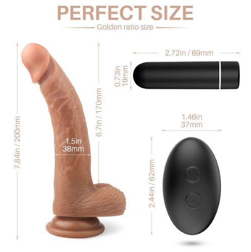 The dildo comes with a separate remote control bullet vibrator, so you could use the realistic dildo to stimulate the G spot, use the bullet vibrator to stimulate the nipples, clitoris, and anal, and also you can insert the bullet vibrator into the dildo to be a dildo vibrator, which has 9 different vibrations, it will make much more fun for your life.